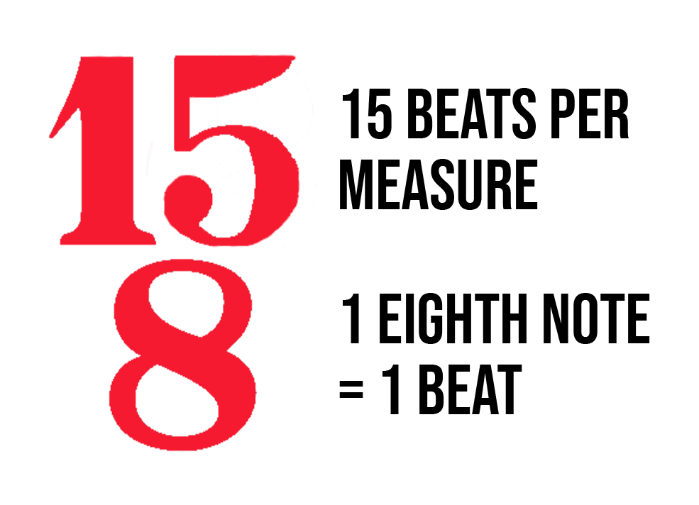 There are some unique time signatures out there with big numbers, 15/8 being one! An example of 15/8 you can listen to is “Tubular Bells” by Mike Oldfield, which groups the 15 beats into 7 and 8.