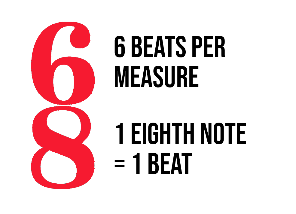 An 8 as the bottom number of a time signature means that an eighth note equals one beat. 6/8 is a common time signature and it gives a waltz feel similar to 3/4, only quicker.
