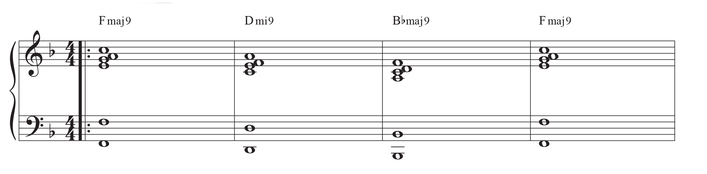 For example, this is an F chord with extensions: