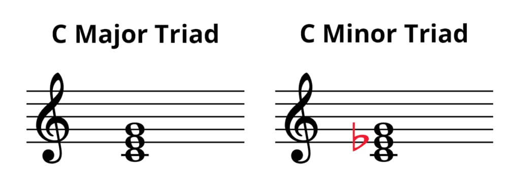 Finally, we can simply switch out a major chord for a minor chord. It’s as easy as lowering the third of a major triad down a half-step. Even a tiny change can make a big difference!