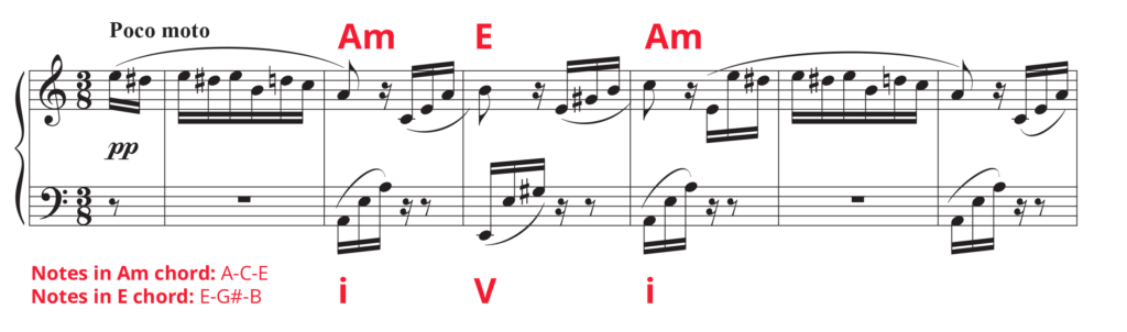Recognize this piece? It’s Beethoven’s “Für Elise”! One of the most famous pieces for piano begins with a simple i-V-i progression.
