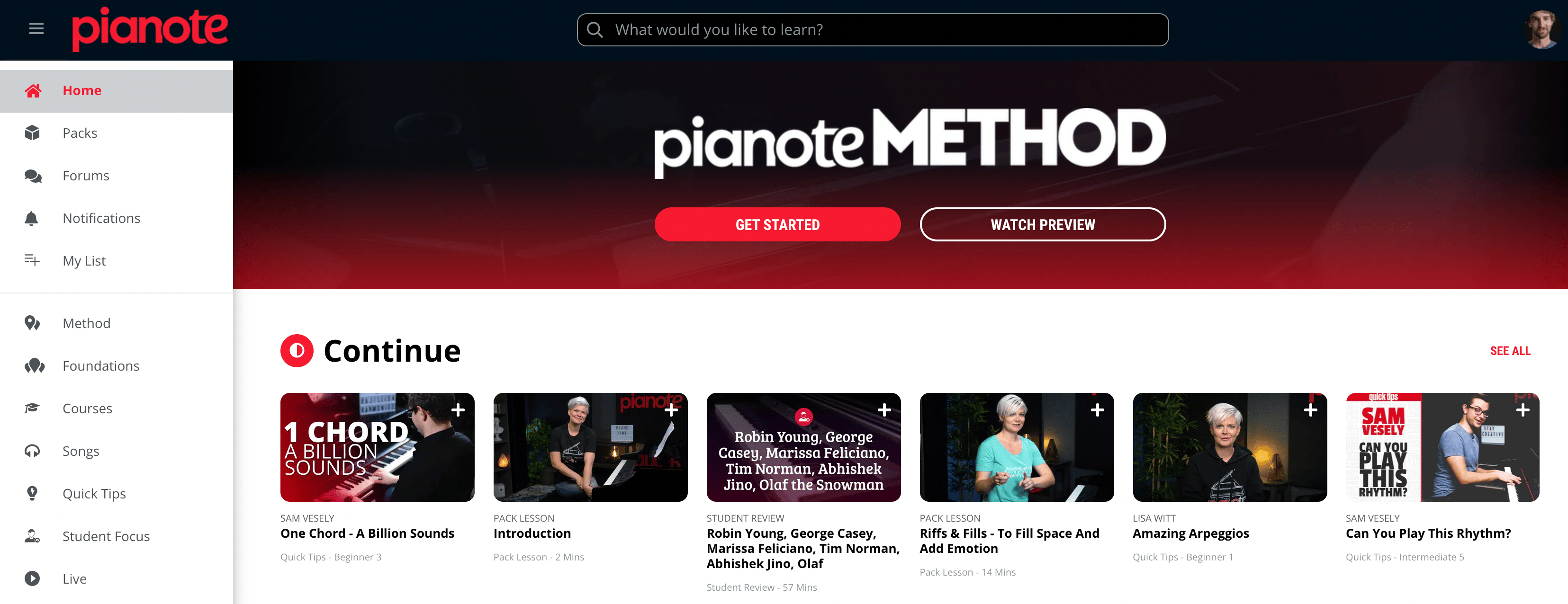 That being said, as a precursor to our complete (and well-organized 📝) curriculum at Pianote.com, we have a fantastic resource of free and in-depth lessons available on our YouTube channel, with new videos every week, and a focus on getting people excited about playing the piano with popular song tutorials, tips on technique, and different playing styles. It’s a great way to see what Pianote is all about. If you like a deeper look, check out our 7-day trial. 🙃
