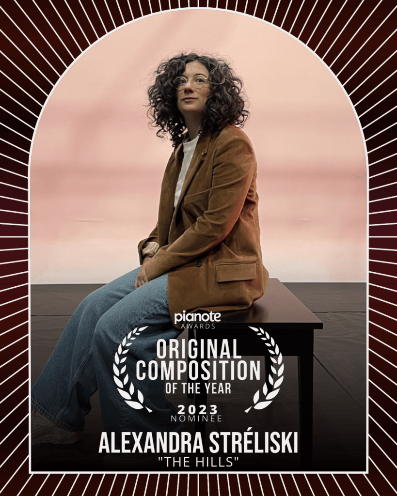 Alexandra Stréliski’s emotive piece “The hills” was inspired by the loss of a loved one. This popular piece gained 7M plays on Spotify and the album from which it comes, Néo-Romance, was longlisted for the Polaris Music Prize.