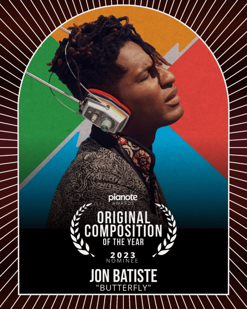 Jon Batiste’s piano-driven “Butterfly” has been nominated for a GRAMMY Song of the Year award. World Music Radio, which carries the track, was also nominated for a GRAMMY as Album of the Year. “Butterfly” is featured in Batiste’s 2023 biographical documentary American Symphony.
