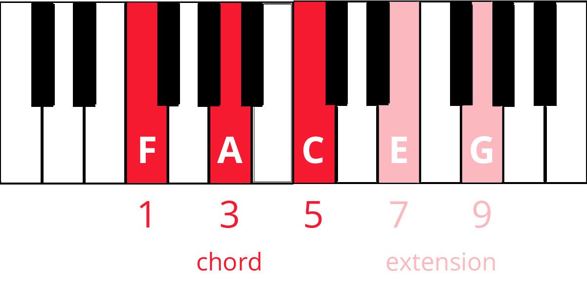 For example, Jesús takes an F Major chord (F-A-C) and adds a ninth (F-A-C + G). The G is nine notes up from F.