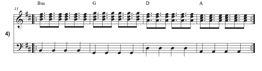 This one is similar in rhythm to Exercise # 3, but now we are swapping the hands. So your left-hand will be playing on every quarter note beat, and your right-hand will be doing the fancy rhythm. You might actually find this easier than the others because most people have a better right hand.