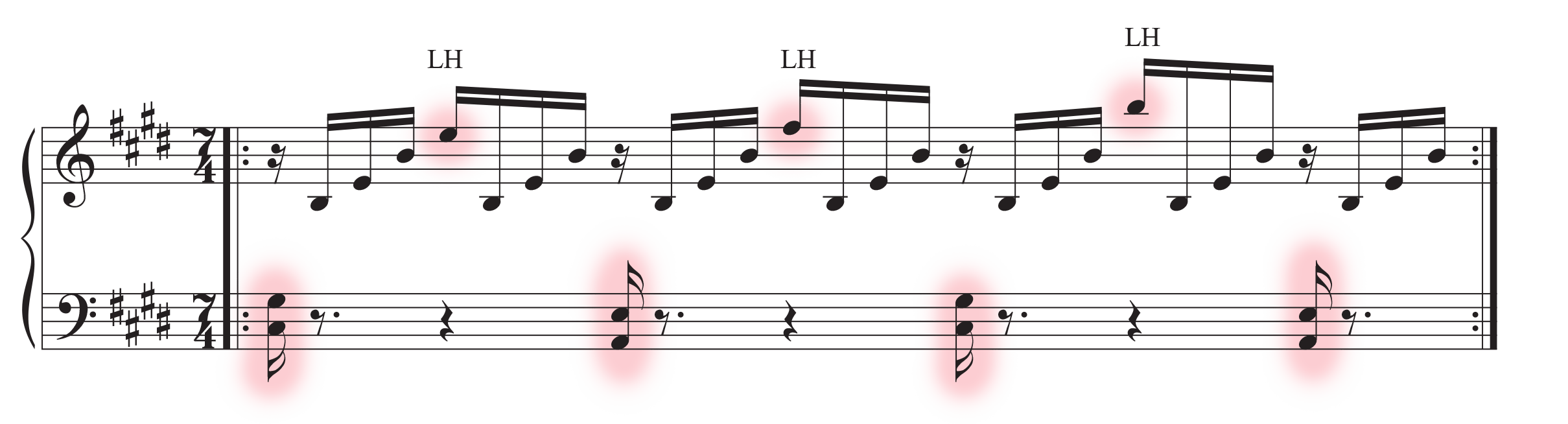 This speed exercise requires both hands and a stylish crossover. The left-hand notes are highlighted here: