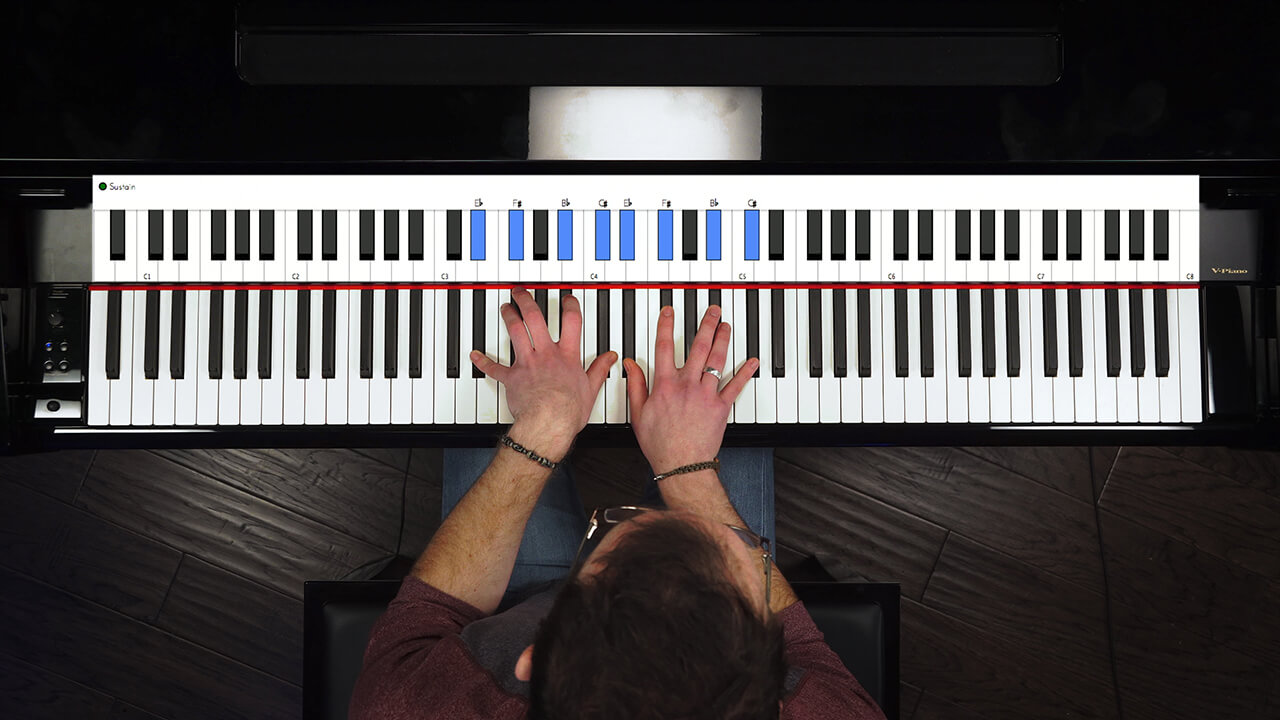 It seems like a weird key to suggest to a beginner, but it really works. To get a better sense of why it works so well, take a look at the formula for the pentatonic scale. That formula is 1-m3-4-5-m7. If you apply that formula with Eb as your ‘1’, you’ll find out that you can play the entire pentatonic scale using only the black keys. So you can totally forget about the white ones!