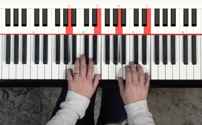 You can see you’re just one note higher with both hands. Easy right? Now do it one more time. Move up one more white note. That will be A minor.