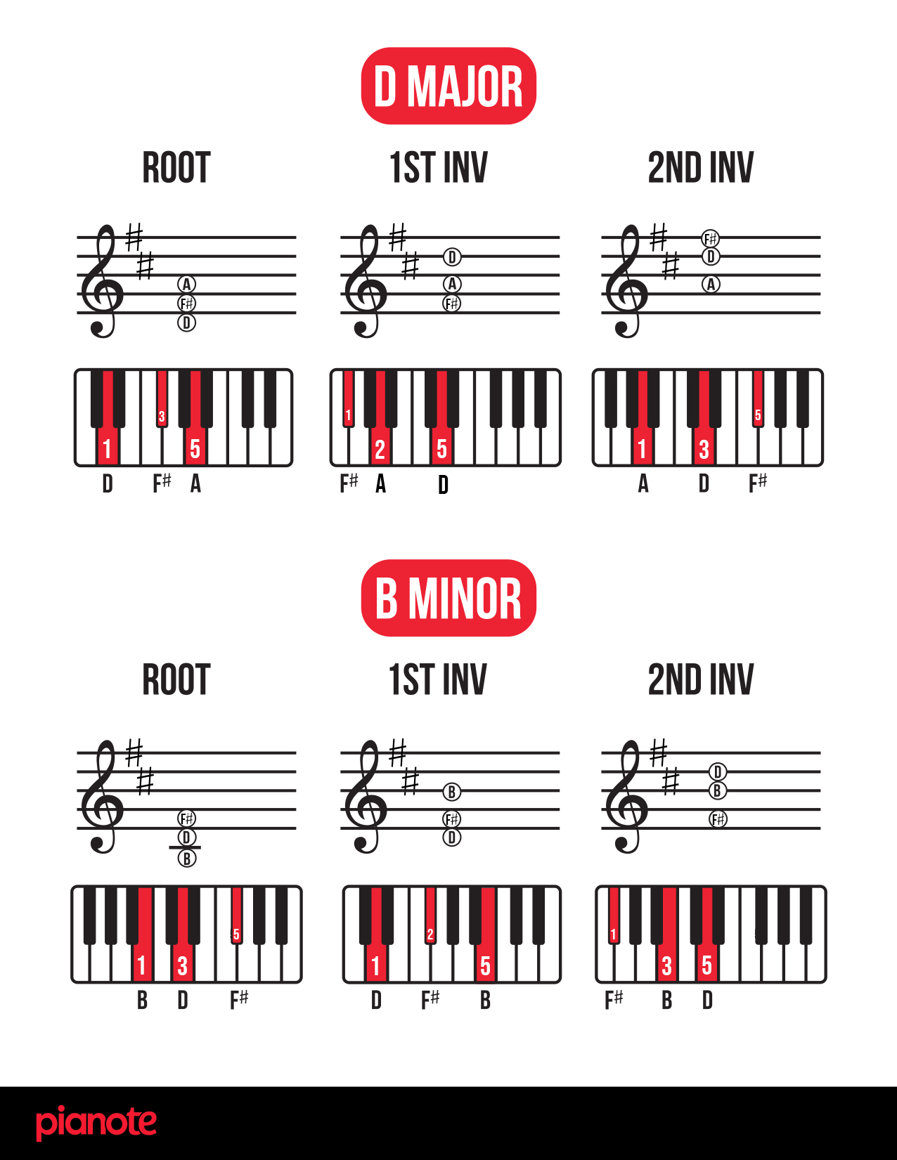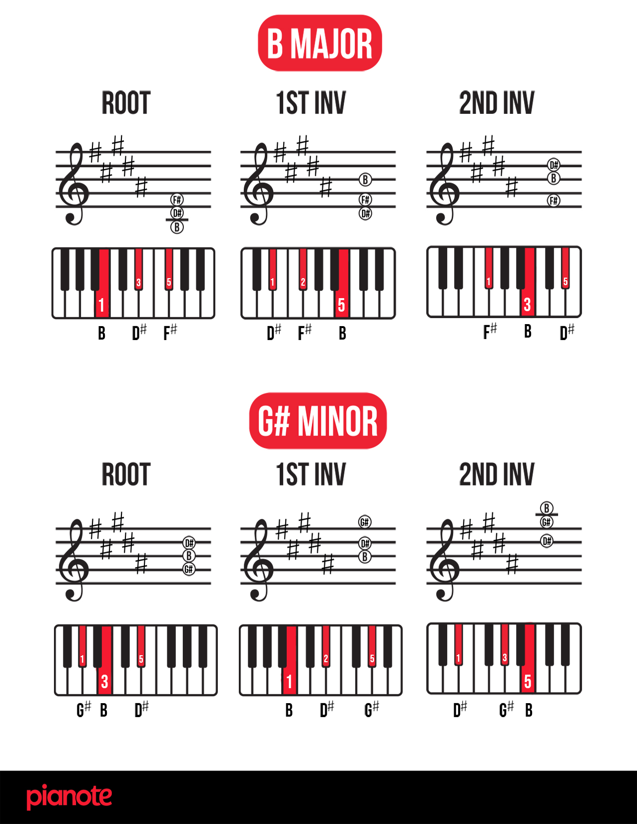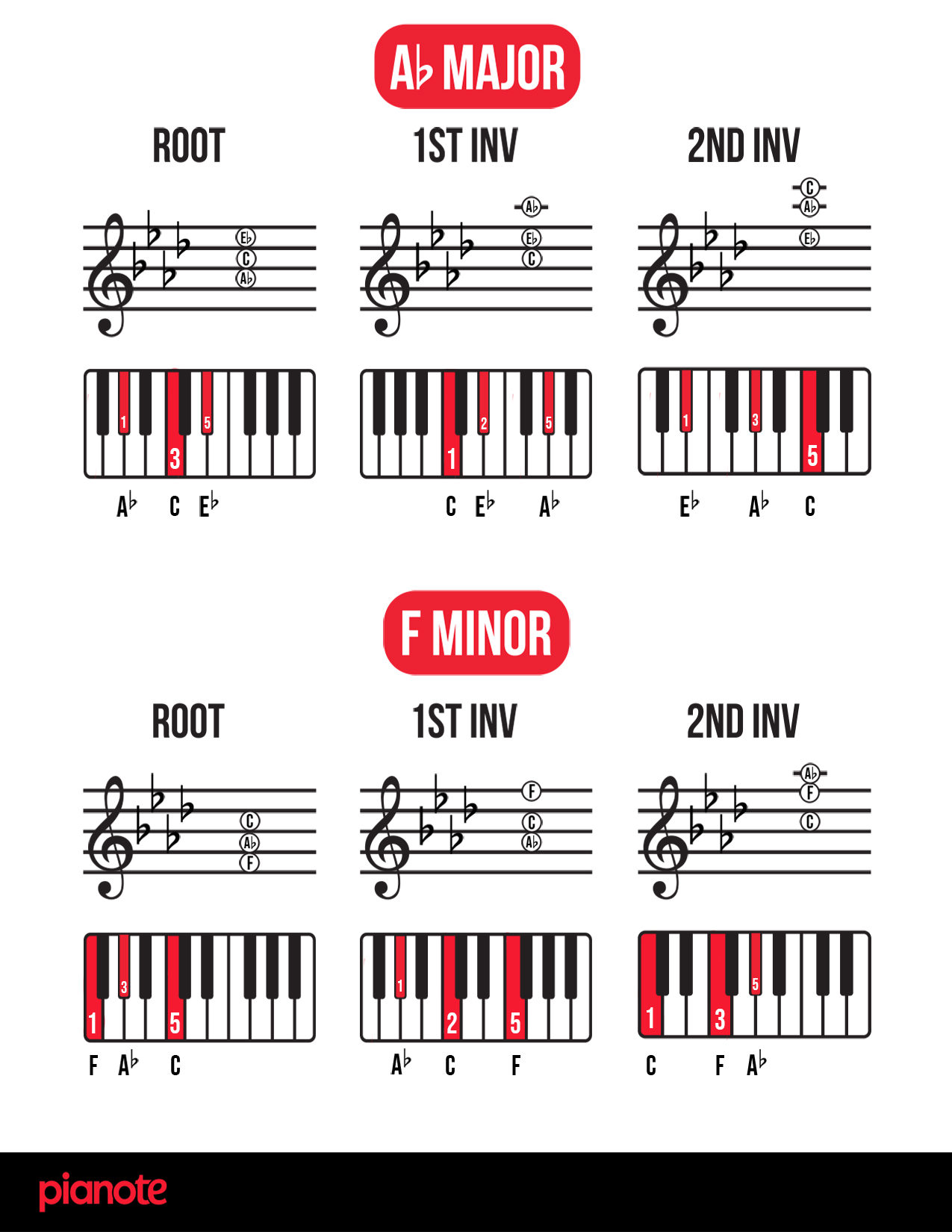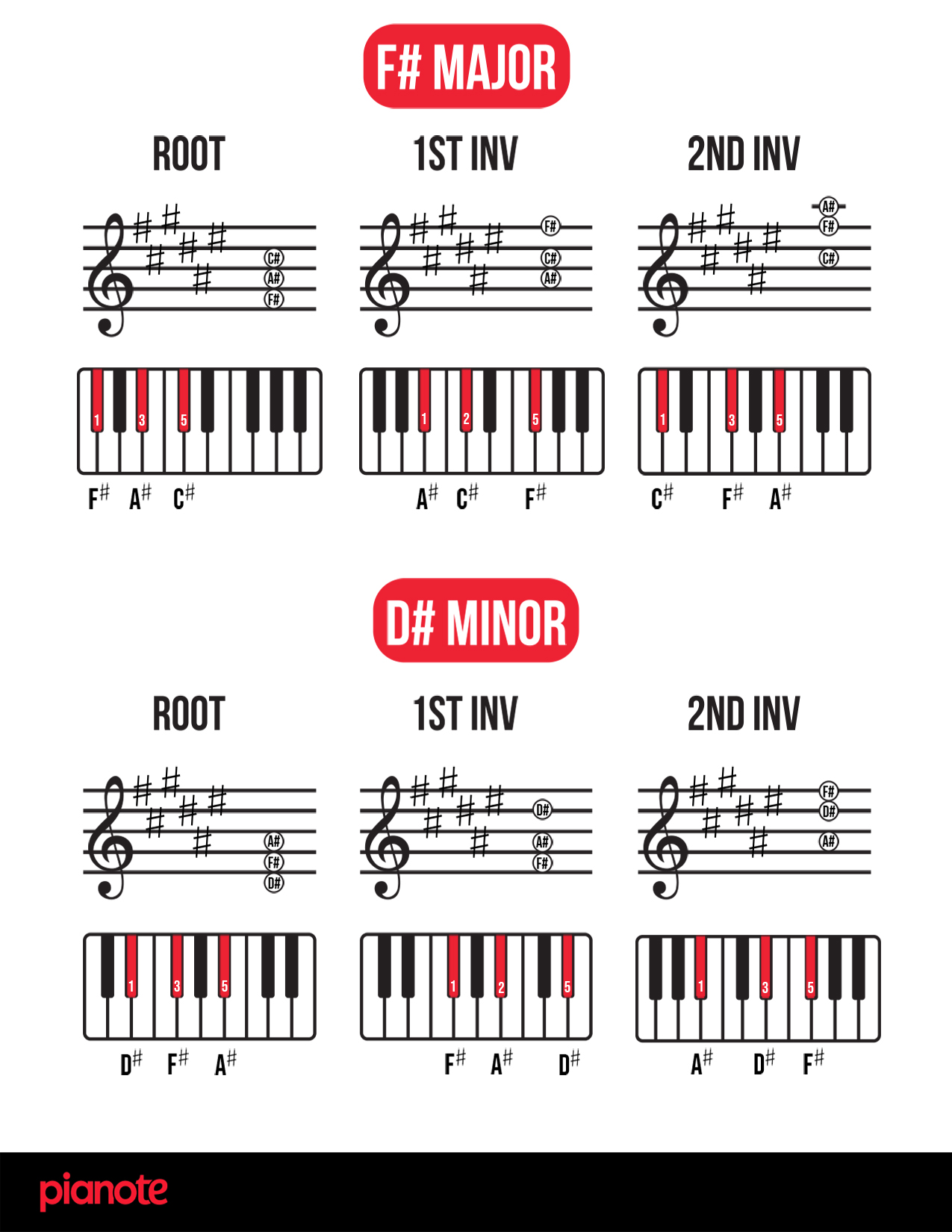 Finally, as promised, here are links to a PDF of ALL piano chord inversions in EVERY single key! We hope you find this resource helpful 🙂