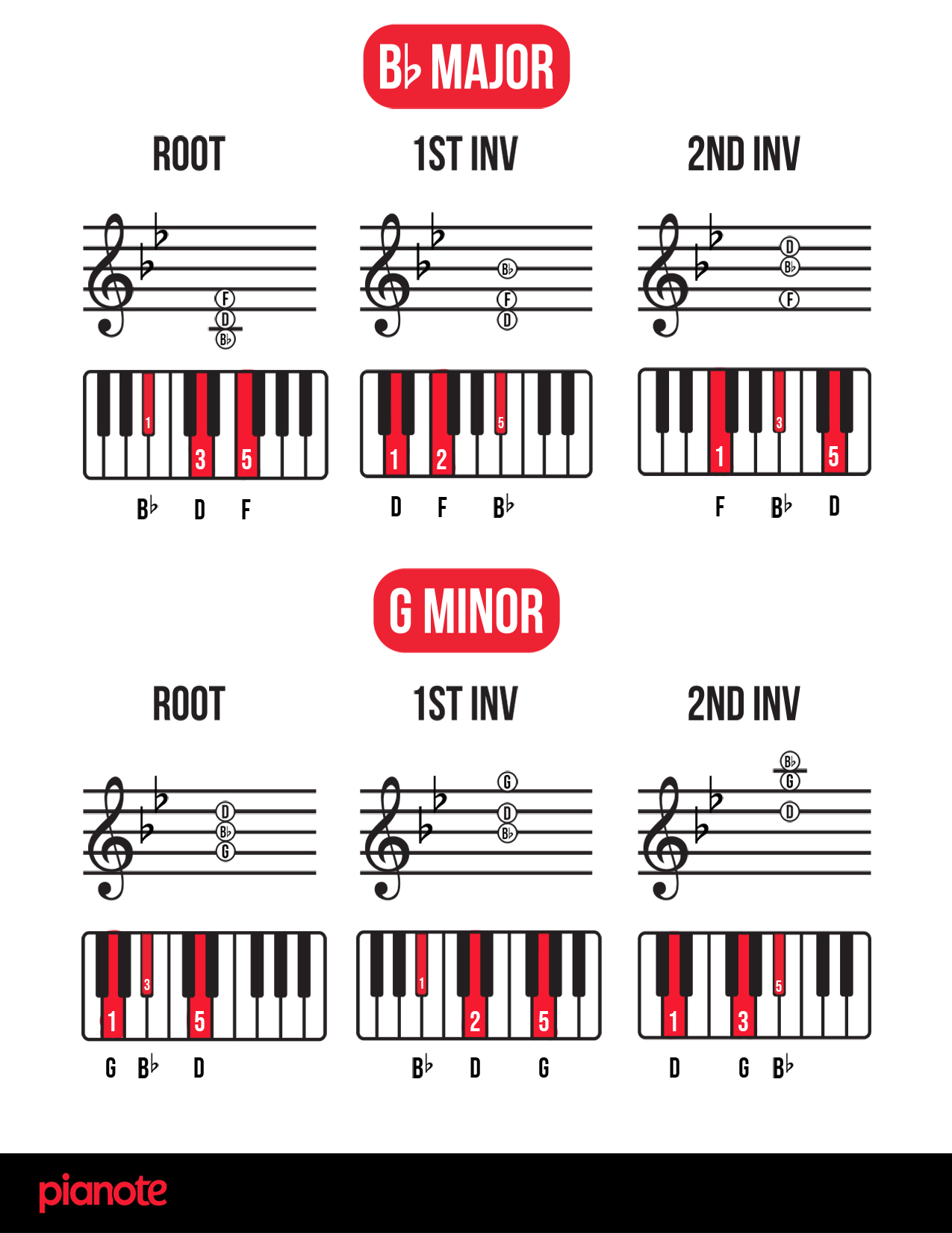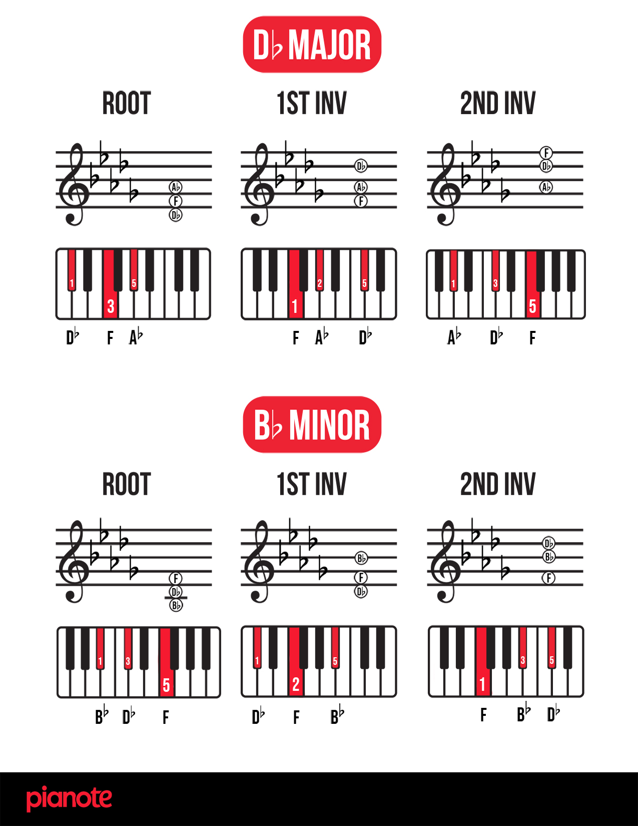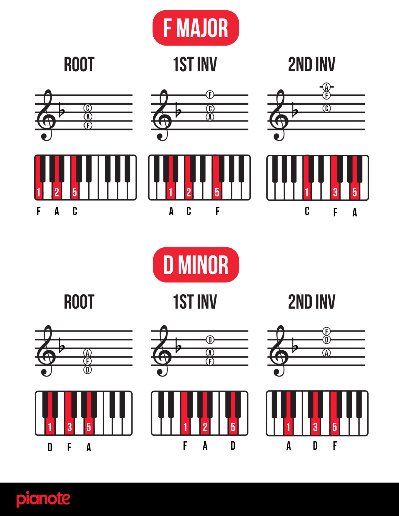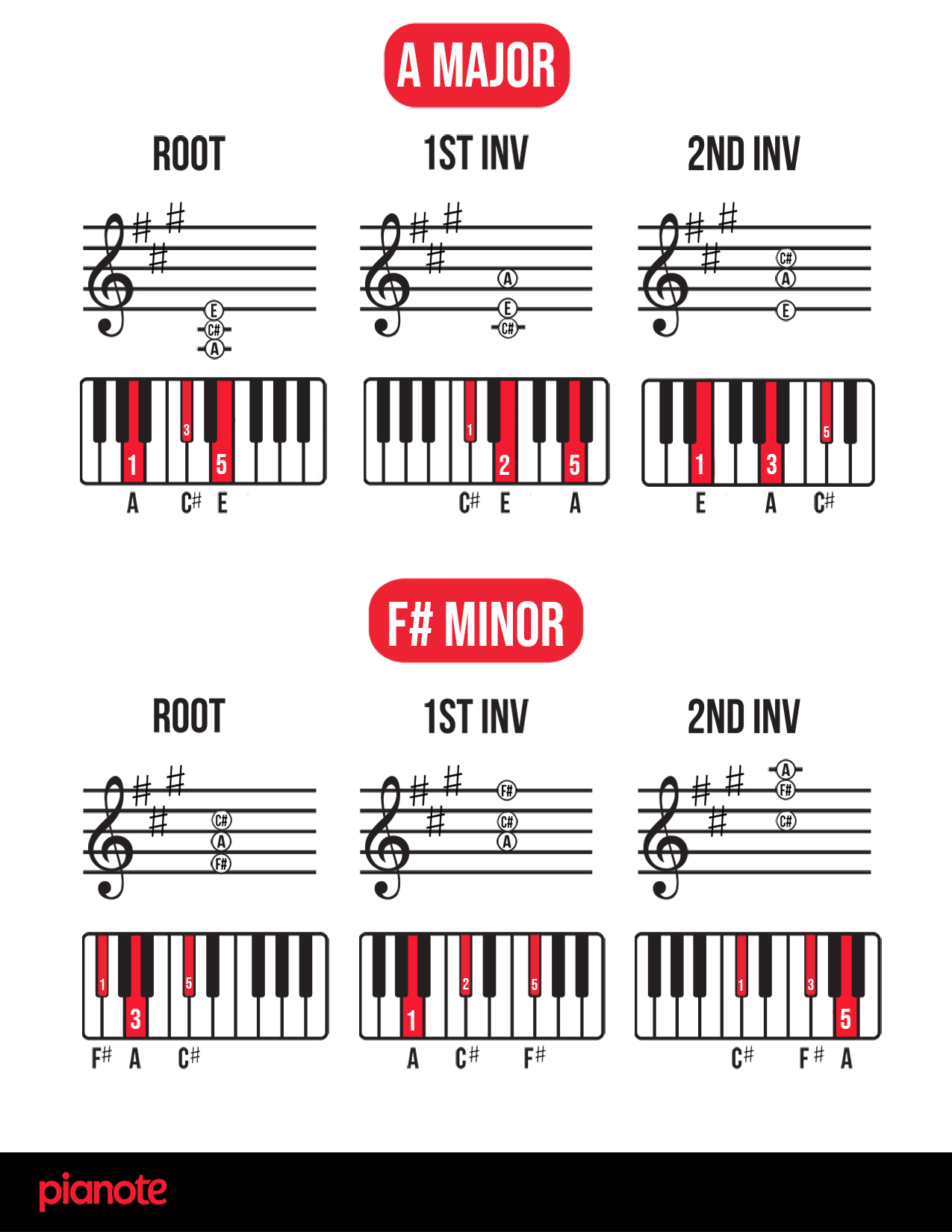 Finally, as promised, here are links to a PDF of ALL piano chord inversions in EVERY single key! We hope you find this resource helpful 🙂