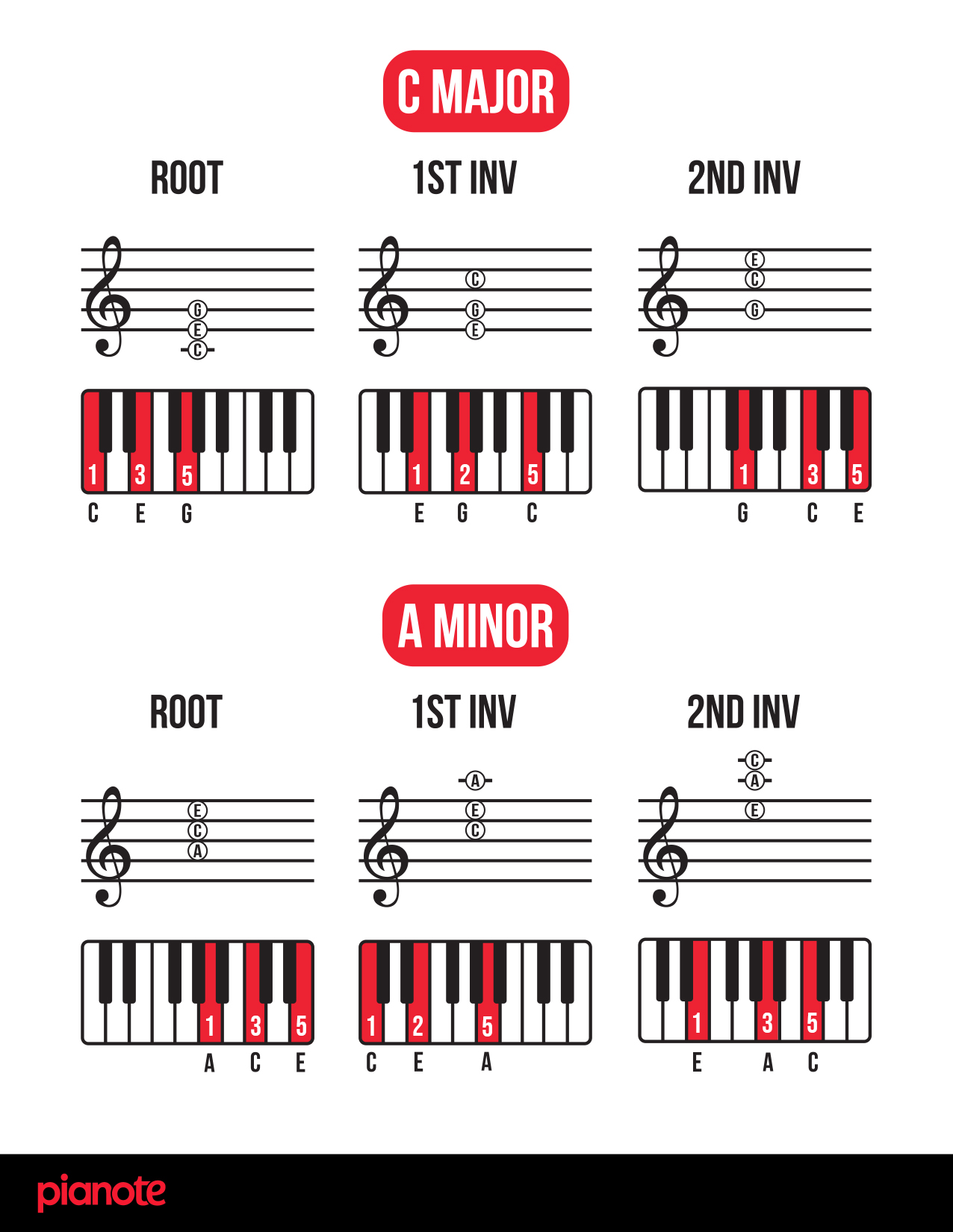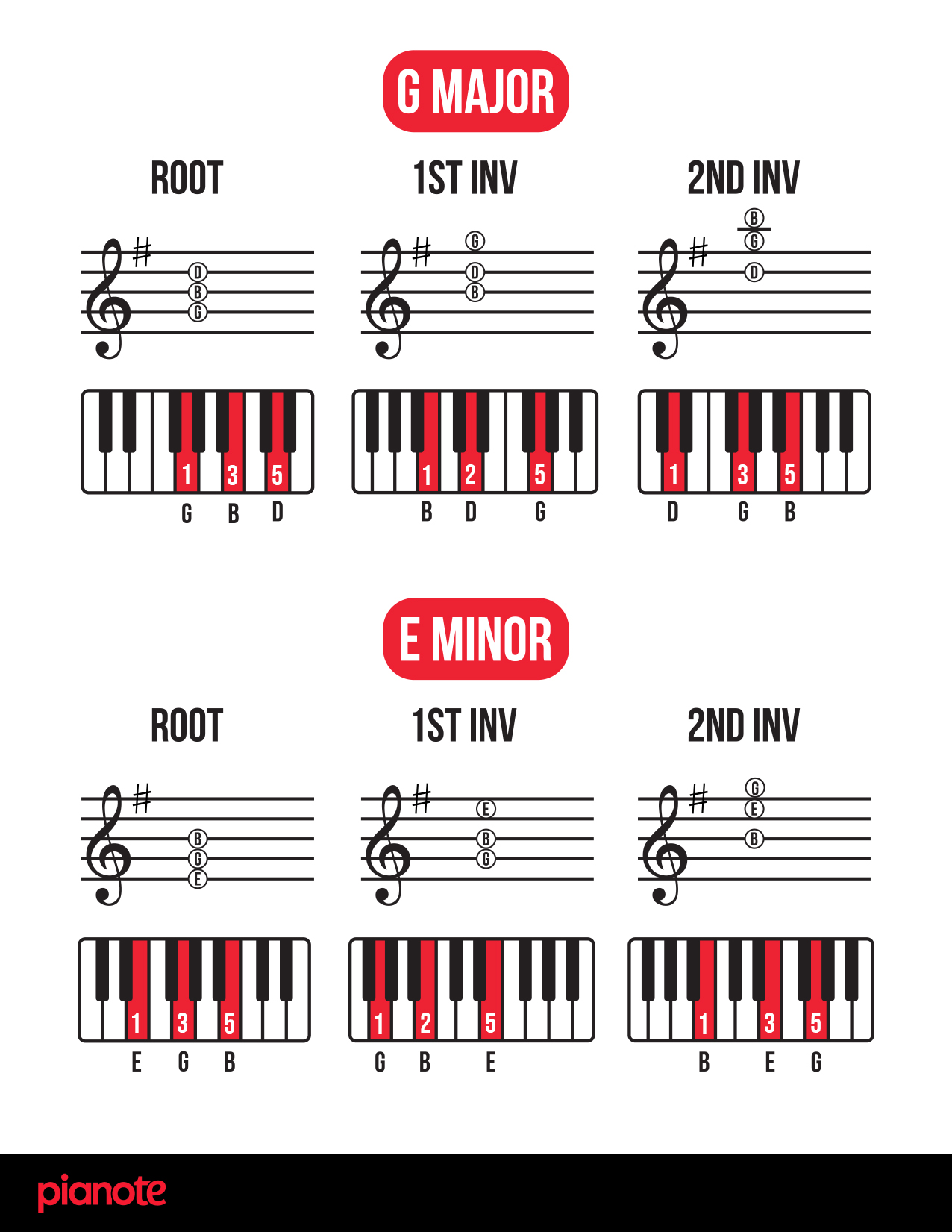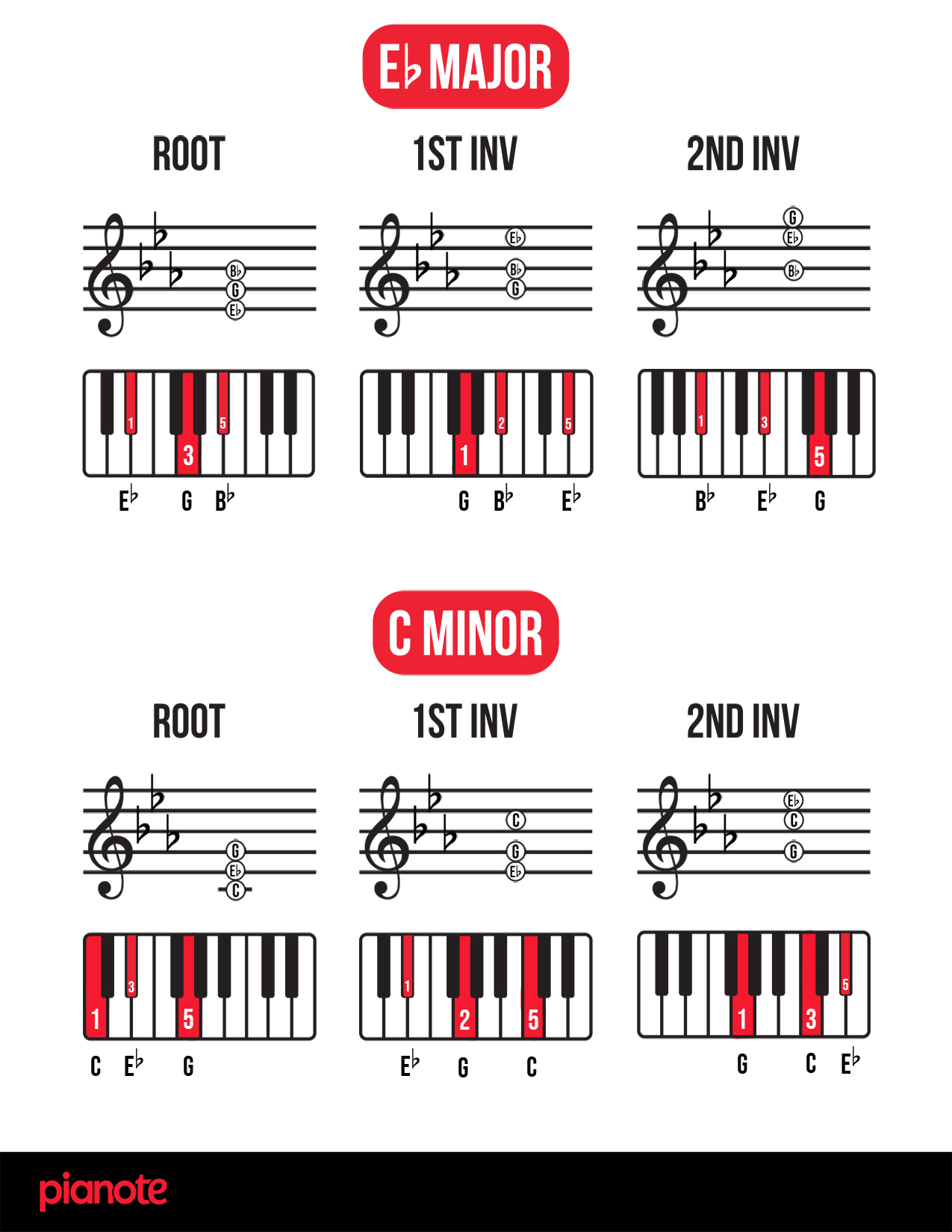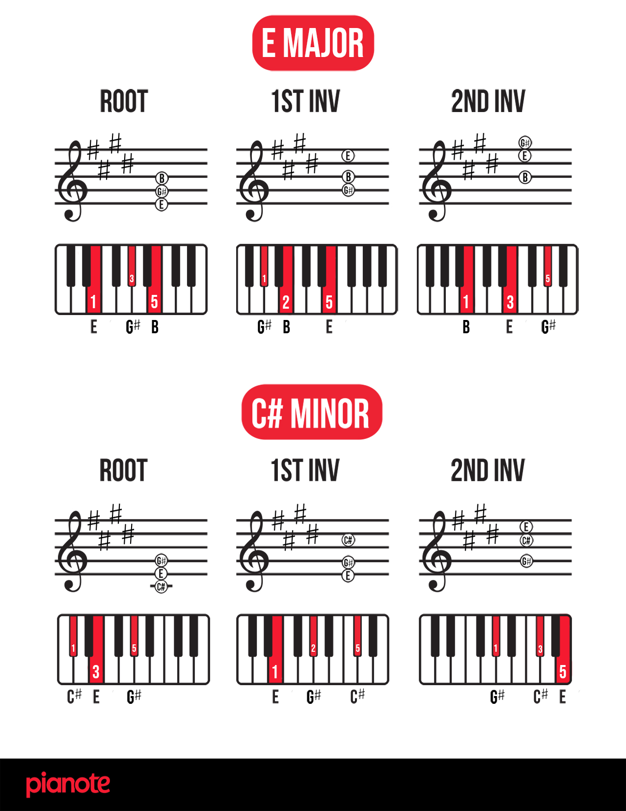 Finally, as promised, here are links to a PDF of ALL piano chord inversions in EVERY single key! We hope you find this resource helpful 🙂